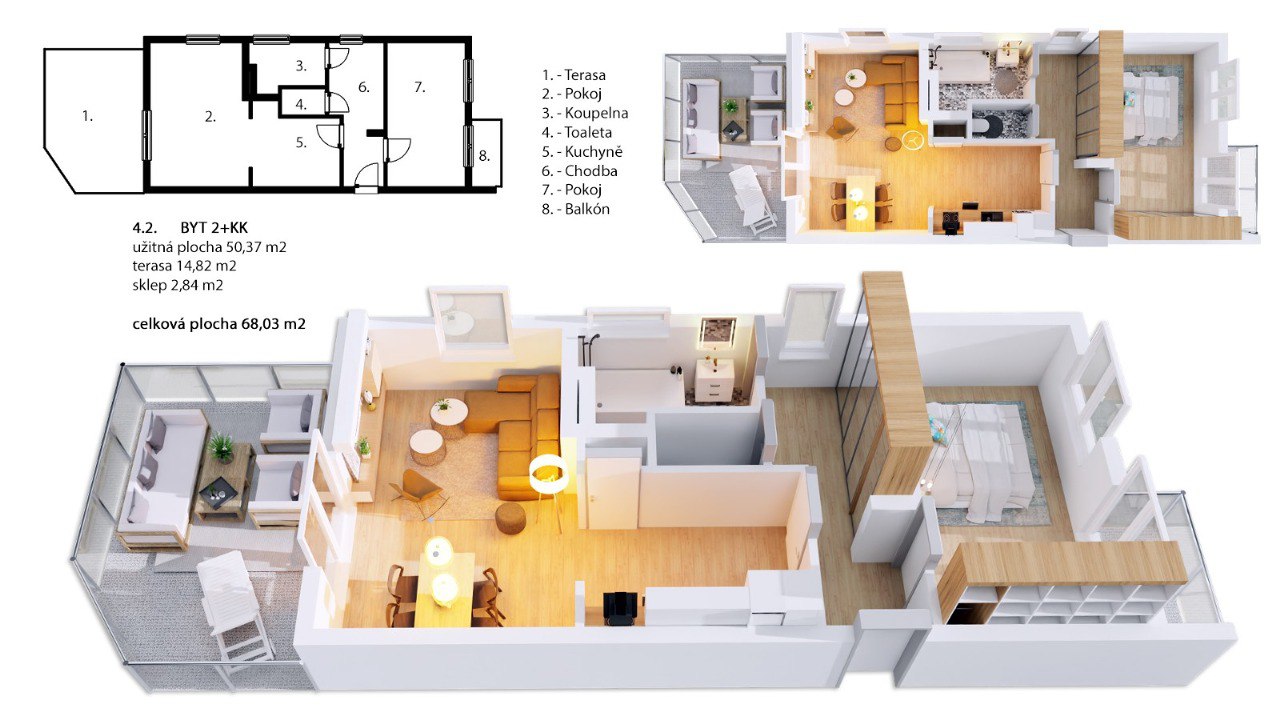 Každý byt je navržen tak, aby nabízel dostatek prostoru pro pohodlné a luxusní bydlení.